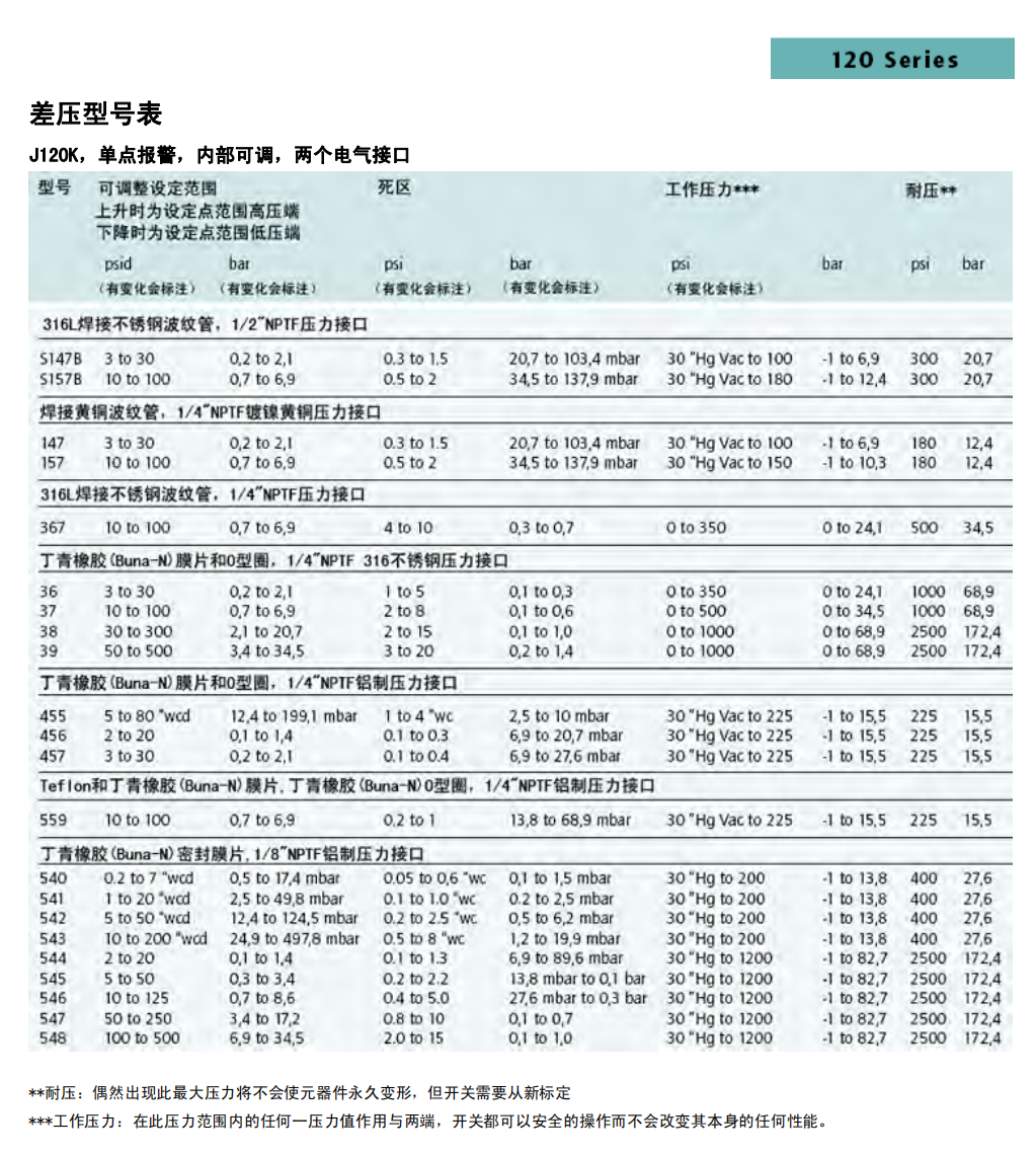 J120K-S147B 455-457 防爆差壓開關(guān)