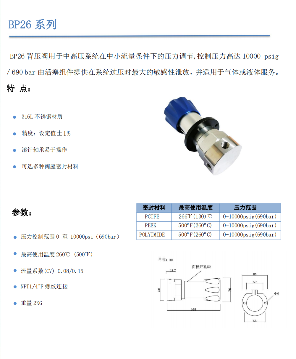 BP26超高壓背壓閥(15000PSI)